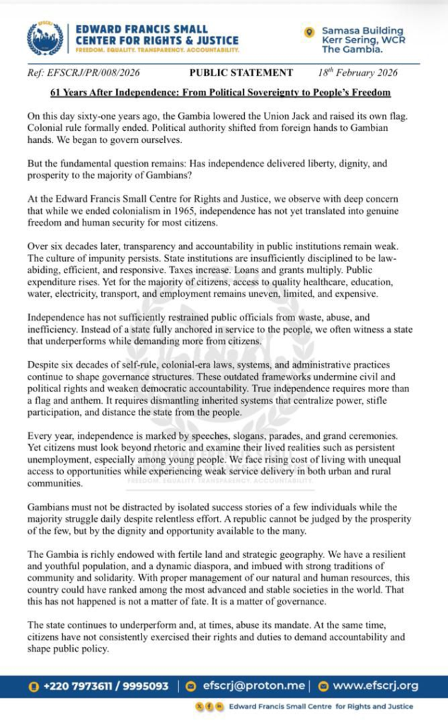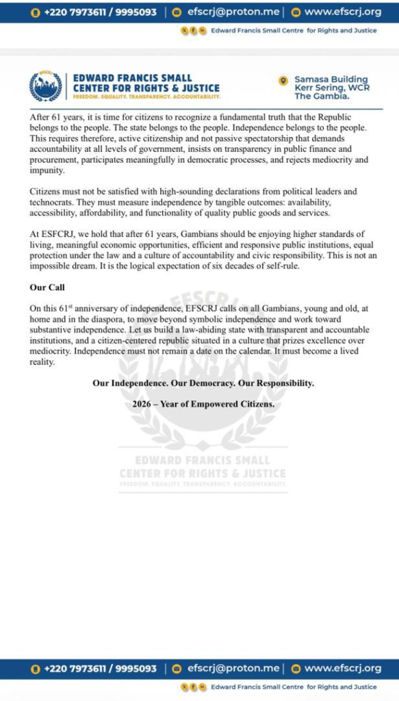 GambiaAt61 #TrueIndependence #Accountability #ActiveCitizenship #EFSCRJ