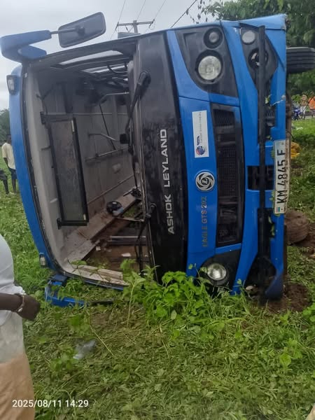 Officers from the Kalagi Police Department have arrived at the scene of a tragic road traffic collision that involved a GTSU bus with the registration number KM 4845 K. The bus was traveling from Bwiam to Soma.