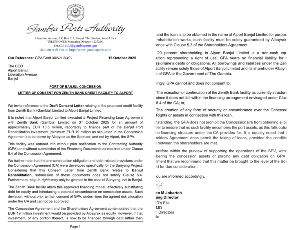 But today, the Gambia Ports Authority (GPA) itself has confirmed everything in black and white.